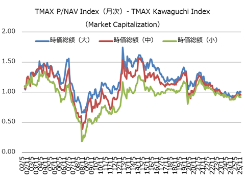 2.TMAX P/NAVインデックス推移(時価総額規模別)